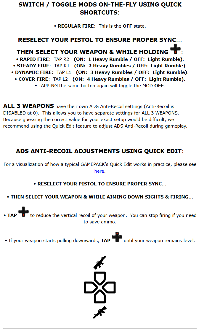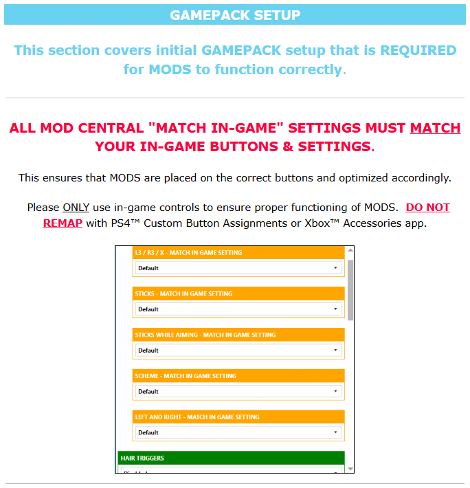 <img src="https://1789109166-files.gitbook.io/~/files/v0/b/gitbook-x-prod.appspot.com/o/spaces%2F5Pbu0ytXByfDjSSpsNex%2Fuploads%2FUhHoXqZMDIDOlvnesiFO%2Ftriangle_centered_new.png?alt=media&#x26;token=7a5f7600-c48d-4dbf-b216-4fc2077a029b" alt="" data-size="line"><img src="https://1789109166-files.gitbook.io/~/files/v0/b/gitbook-x-prod.appspot.com/o/spaces%2F5Pbu0ytXByfDjSSpsNex%2Fuploads%2FD17Gm4pc7jU2j7p3pXbE%2Fcircle_new.png?alt=media&#x26;token=8038daaf-66c4-4413-adfe-f6c71516fc0b" alt="" data-size="line"><img src="https://1789109166-files.gitbook.io/~/files/v0/b/gitbook-x-prod.appspot.com/o/spaces%2F5Pbu0ytXByfDjSSpsNex%2Fuploads%2Fqrd7uRQAxeV9TKcxWEfJ%2Fcross_new.png?alt=media&#x26;token=9e63b1f6-5ea5-48b5-8a8a-8e78e3bd179e" alt="" data-size="line"><img src="https://1789109166-files.gitbook.io/~/files/v0/b/gitbook-x-prod.appspot.com/o/spaces%2F5Pbu0ytXByfDjSSpsNex%2Fuploads%2Fy4dB5e0q8vLiycMzjGMR%2Fsquare_new.png?alt=media&#x26;token=49d1de86-1299-476d-add6-f512b167c166" alt="" data-size="line"> <mark style="color:blue;">**PS4**</mark><mark style="color:blue;">®-</mark><mark style="color:blue;">**compatible STRIKEPACK**</mark><mark style="color:blue;">™</mark> <mark style="color:blue;"></mark><mark style="color:blue;">**GAMEPACK**</mark>